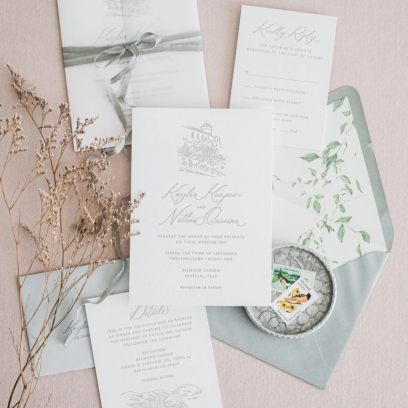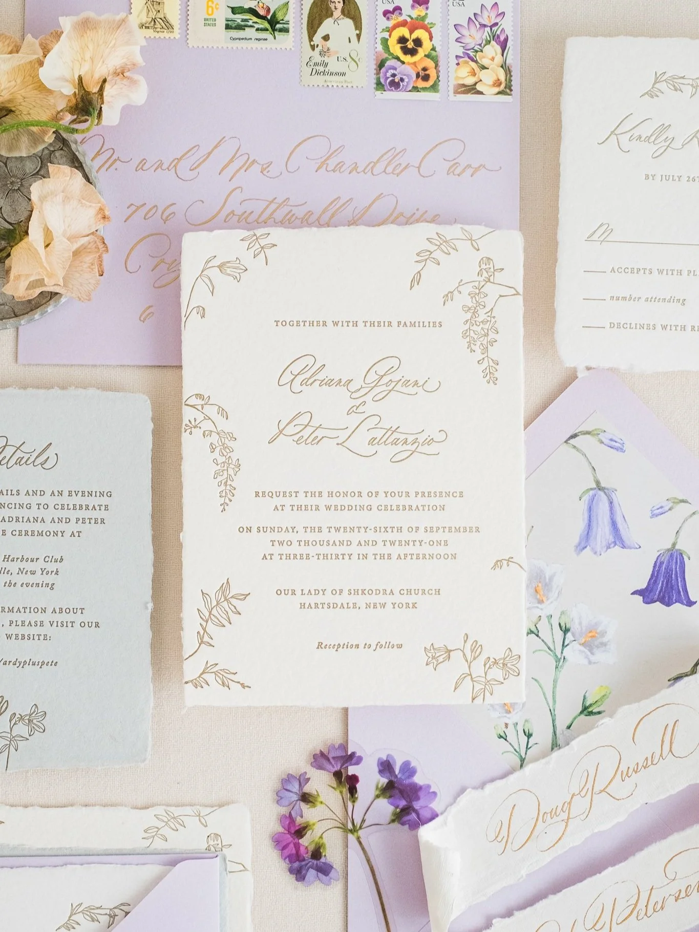 Our Wedding Collections showcase an array of cards ranging from save-the-date, invitation, response, and details. We offer a wide selection of printing techniques, papers, colors, and curated embellishments, creating an entire suite that represents your day. Explore our Collections and choose the best design that suits your budget and wedding aesthetic.